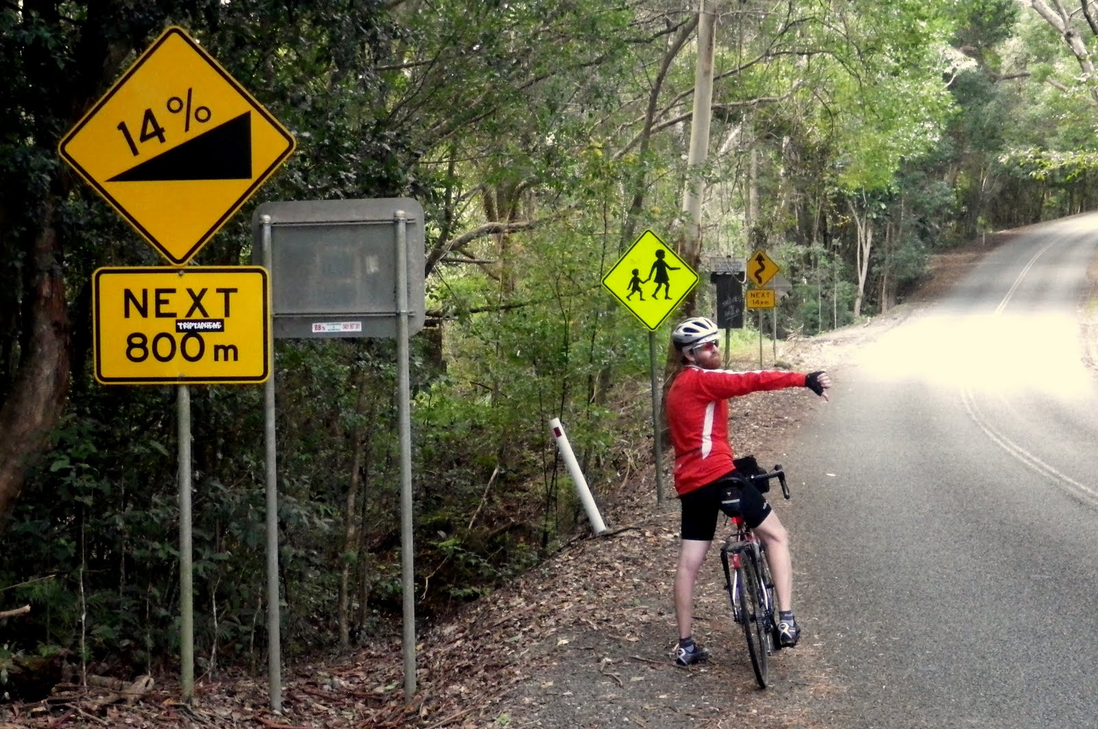 We continued along Currumbin Creek road, seeing only a handful of cars and about 5 other cyclists. After about 10km we turned left, to begin the ascent up Mt Tomewin.