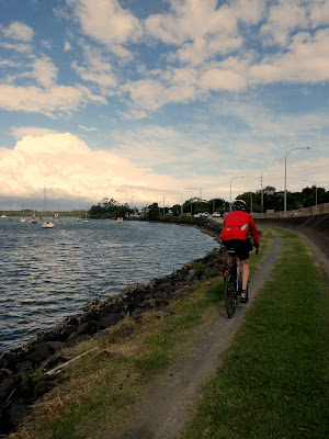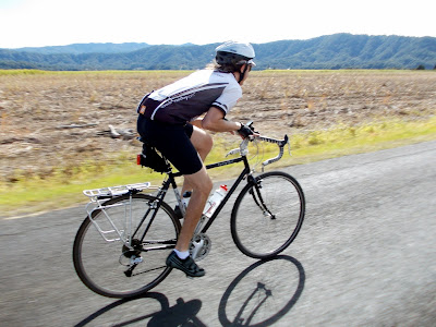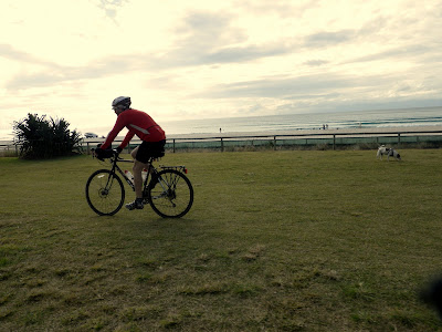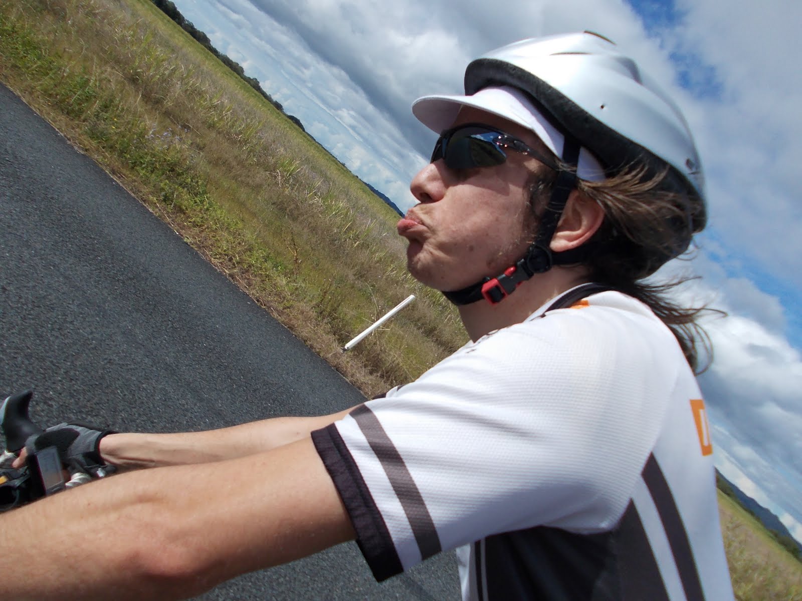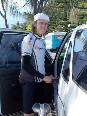I personally thought it a bit ironic we were being leered at by grown men sporting tight fitting wetsuits that weren't too dissimilar to our lycra cycling gear, but I was still trying to keep a low profile. Jer obviously felt a bit self conscious as well, although his way of dealing with it was to absent mindedly sing "Careless Whisper" by George Michael while bending over in his cycling shorts to do his shoes up. Yep, that will certainly let everyone know you're a manly man. Obviously, it was time to GTFO and get on the road.