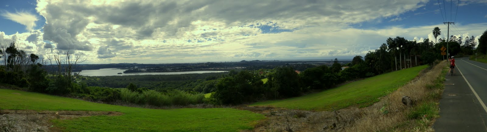 We headed back along the river out of Tumbulgum, and started back up the gradual climb to Terranora. The steady climb would normally not be too taxing, but my heavy legs from sitting around for an hour made it seem tougher than it was. The ride up into Terranora reminded us we were slowly making our way back into civilisation, another 10km climb taking us through semi-rural lifestyle blocks, with an increasing amount of traffic. Still the traffic was excellent the whole day in NSW, with riders giving us a clear berth, or slowing down to our speed, and patiently waiting for a safe opportunity to overtake. As we reached the top of the climb and followed the ridge line, dark clouds were seen building to the north and south. Jer commented "I bet with our luck it starts pelting rain just as we get back to the car." Indeed.