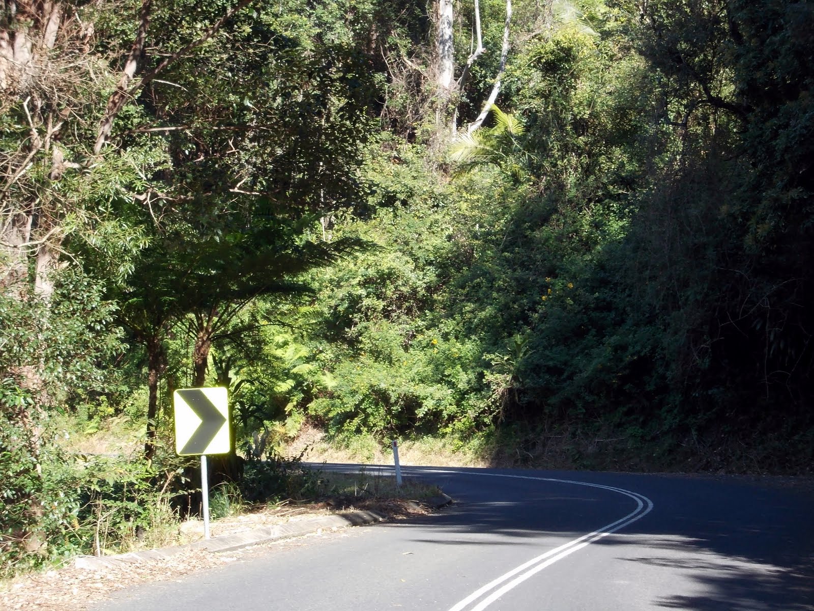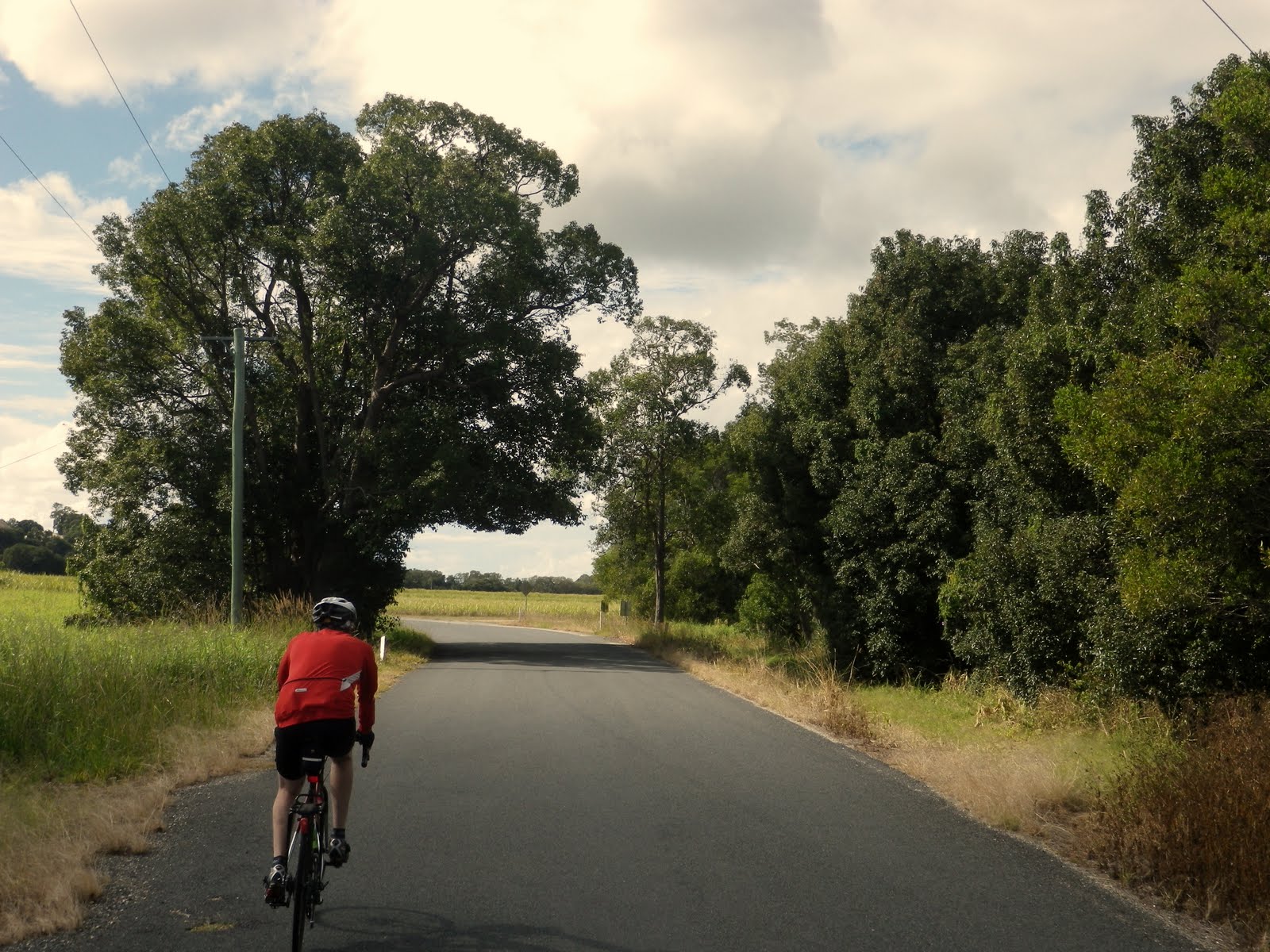 On the bikes, we headed south-west, away from the coast, and along the banks of Currumbin Creek. Within ten minutes we were out of the light suburban traffic, and riding through the picturesque Currumbin Valley, passing hobby farms and lifestyle blocks. The road had very little traffic, a refreshing change from the congested chaos of Brisbane. The rural road we were riding on even had a dedicated bike lane, that motorists actually seemed to respect.