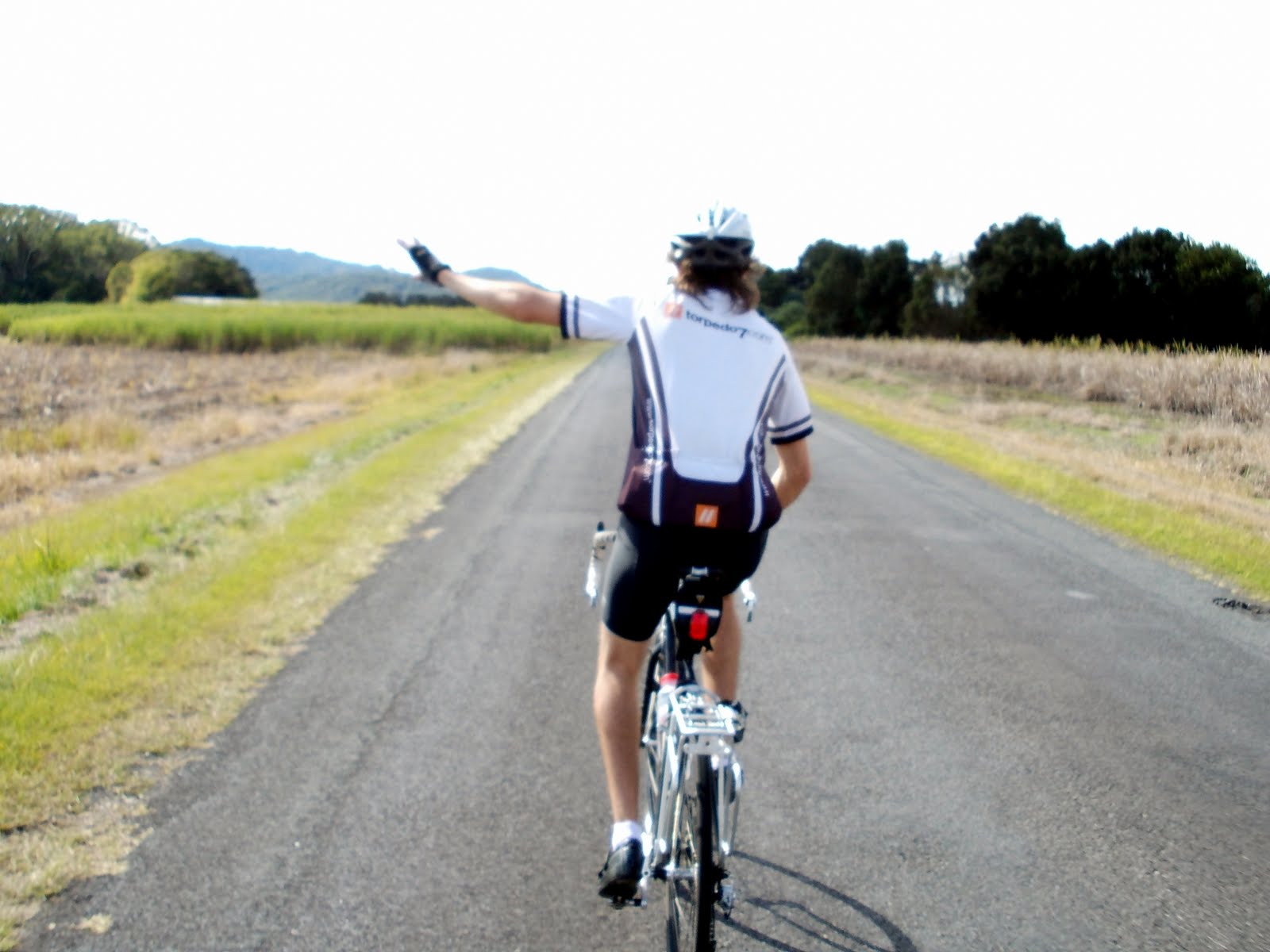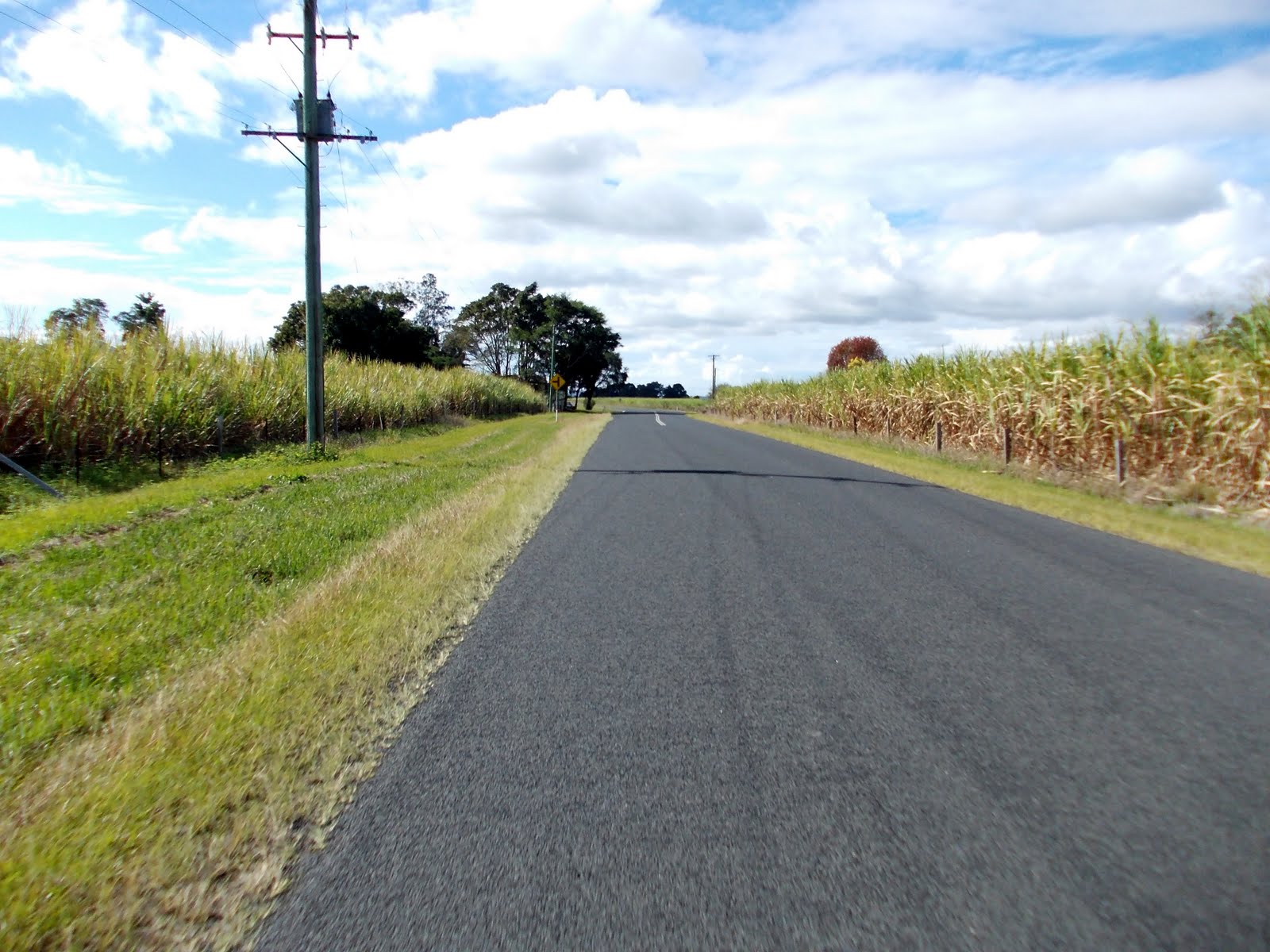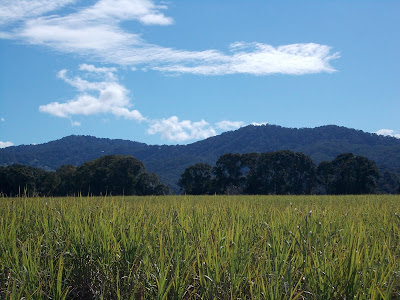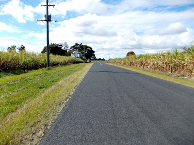 At Dungay we turned left down a little used rural road through the cane fields, skirting along the base of the range we had just descended. Jer asked at this point how long until lunch, I said "I think it's only about 12km away along the flat". He asked "And how far is the ride today?" I said about 70km, to which he sadly replied "man, I am not looking forward to going back over that mountain..." I didn't have the heart to tell him we weren't going back that way, it would be more fun to watch him sulking for at least another half hour before I broke the good news. Anyway the ride into lunch was a delight - clear skies, flat roads, no traffic, light tailwind. The perfect opportunity to take some photos while riding along.