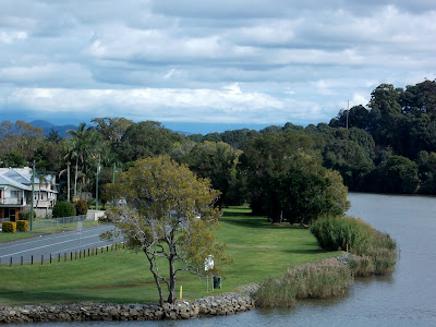 Another quick descent off the ridge, and we found ourselves in the suburbia of Tweed Heads. This section of the ride was a bit of a trip down memory lane for me - in the 80s my family used to go camping at Brunswick Heads a lot, and this route was a part of the main road south. But the main highway had long since bypassed this stretch, and may businesses were closed and overgrown. Heading into Tweed Heads, we found ourselves on the wrong side of the road on the Boyd's Bay Bridge, so a quick an unscheduled detour by the side of the river saw us back on the right track again, and back into Queensland.