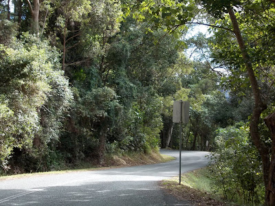 The ascent that followed could best be described as more difficult than riding down to the shops, and only slightly less difficult than riding a bike with square wheels up the side of Mt Kilimanjaro. The next thirty minutes comprised a 10km ascent up a gradient of between 10% and 14%, punctuated in the middle by a short downhill run to ensure we had even more climbing to gain back the lost elevation. For a pair of riders whose idea recent idea of a long ride had meant 9km downhill into the city on a Sunday morning, this was a tough climb. The road snaked up and up Mt Tomewin, through the temperate rainforest, offering the odd glimpse of the valley below.