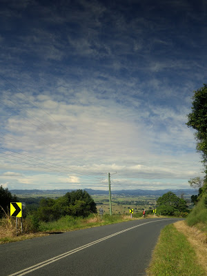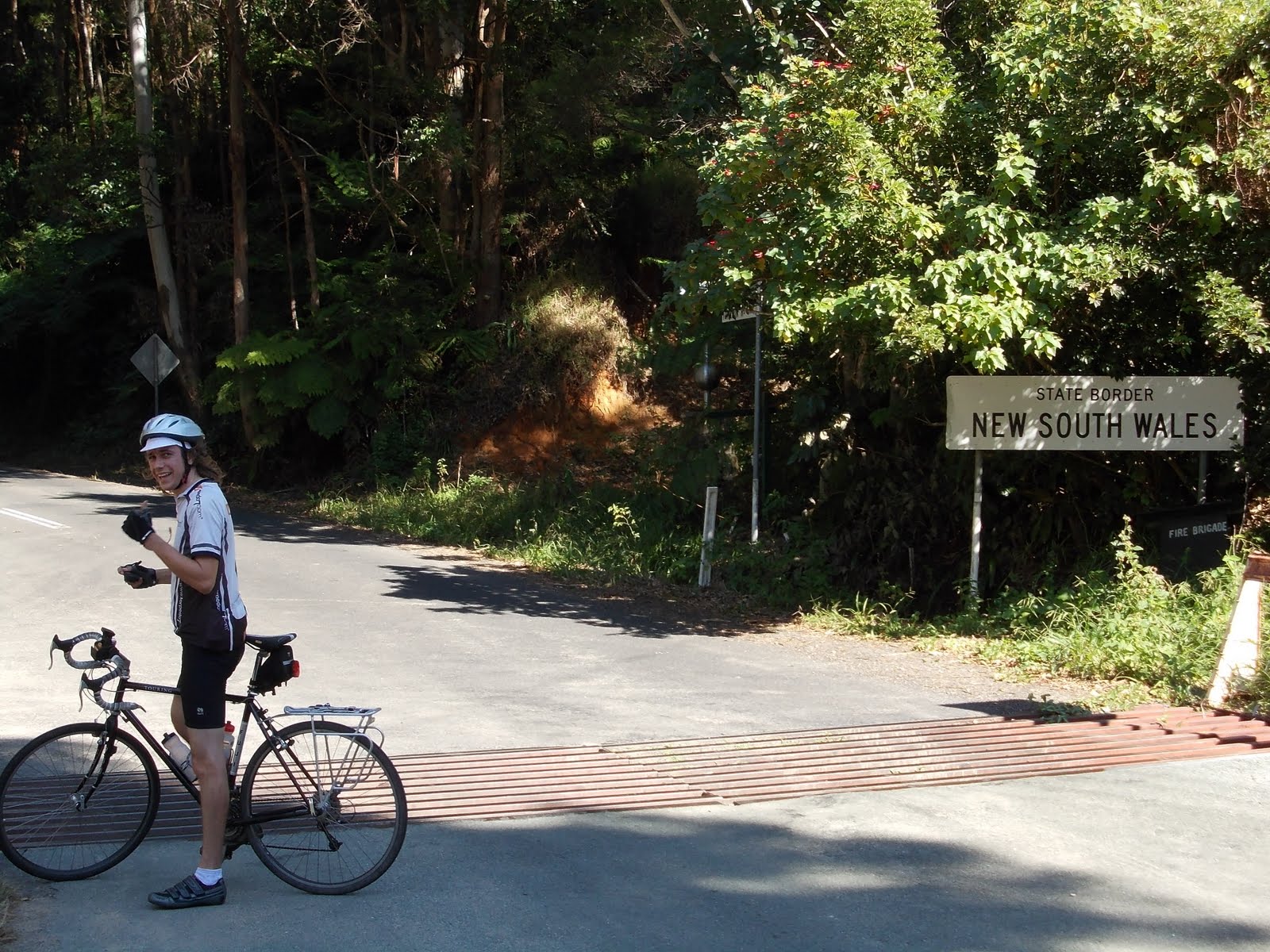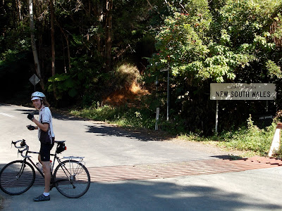 The road up Mt Tomewin is very narrow with no shoulder, but there was very little traffic on the road, even on a Sunday morning. This was fortunate given my epic wobbling all over the road as I struggled up the hill. The only traffic related sad moment I had was when we were passed by a flotilla of baby boomers on their overly loud Harley Davidson motorcycles - the sound of 30 Harleys booming in your ear as you struggle up a climb at 11km/h isn't the most pleasant sensation in the world. We were relieved to have both reached the summit, and be leaving the state of Queensland and heading into New South Wales.