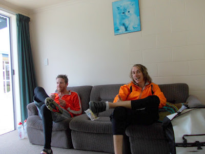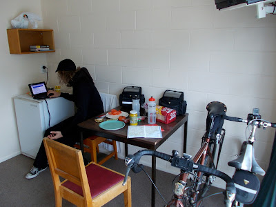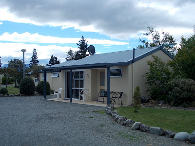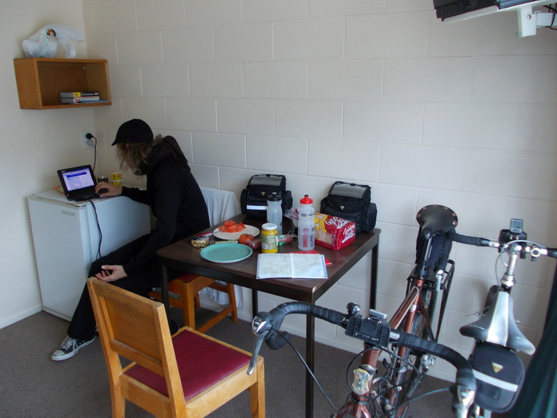 We had no firm plans for accommodation at Omarama, and Allan had given us the recommendation that Ahuriri Motels had a backpackers attached to it and was a good place to stay. As we got closer to town we debated our options for the night. Jer was a bit unsure about another backpackers after the dorm experience at Mt Cook, and was leaning towards getting a twin room at the motel or the pub, regardless of the cost. My feeling was we just go with the backpackers on account of the cheap price, and I reasoned it probably wouldn't be too packed, as Omarama isn't really a tourist town. We easily found the place, and asked the lady at the front desk if we could stay in the backpackers. She was really friendly, and curious to hear about our adventures on the bikes and what we thought of New Zealand. We walked around the facilities and she showed us the kitchen, laundry and bathrooms, all in a building near the campsite. She then showed us to our room - we expected a dorm, but it turns out the Ahuriri Motels definition of a "backpackers" is actually a totally private motel room, featuring a bedroom, fridge, table and chairs and couch. We were beyond excited - after the chaos of the Mt Cook hostel, we had our own quiet little space, far from the maddening crowds. And all for the price of NZ$30 each. This place gets my full recommendation for cycle travellers - it was superb.