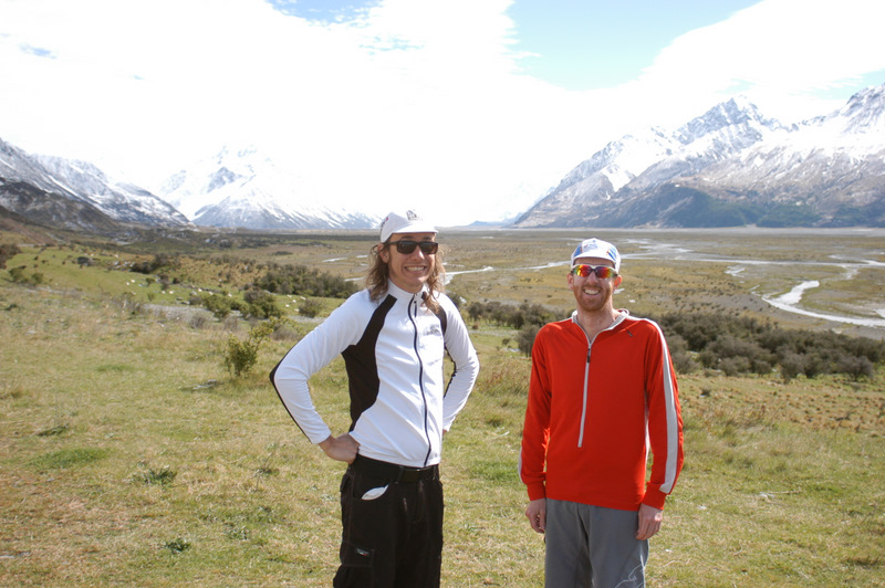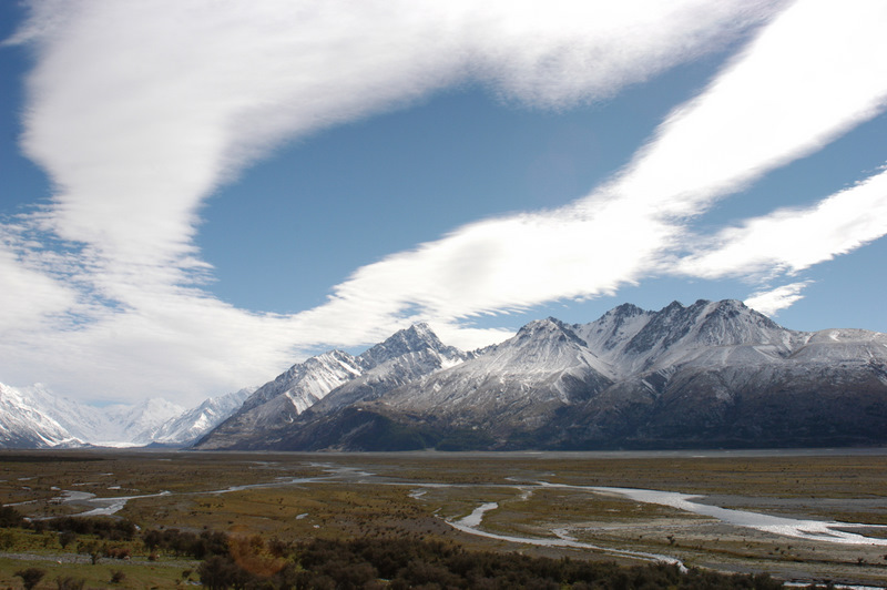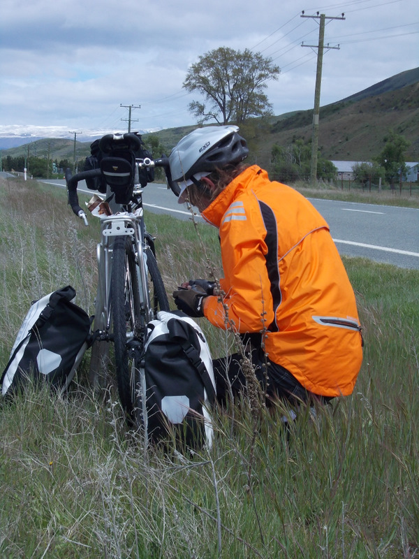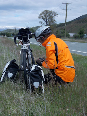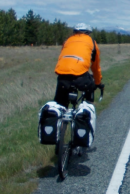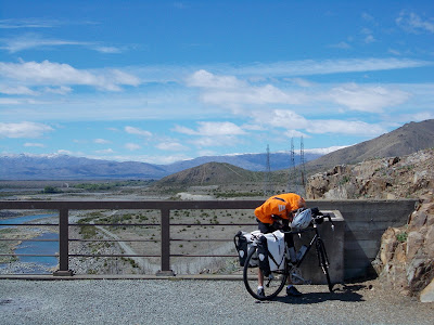 Jer instantly felt better on his newly adjusted touring bike, and all his pain and sores from previous days seemed to disappear. His spirits lifted immeasurably, as did mine. We rolled along through the farmland, with snow capped mountains in the middle distance, and blue skies over our heads. I suddenly had overwhelming feeling of "I'm back in New Zealand!". It might sound like an odd thing to say, but over the past few days in Mt Cook, it hadn't felt like I was anywhere - like I was stuck in some kind of international tourist wormhole that could have been at any location anywhere in the world. I've been to New Zealand a fair bit and I don't know what it is that makes the country what it is, but for me it certainly wasn't at Mt Cook. As we pedalled along, the anxieties and negativities that had plagued me throughout the trip just evaporated away with every kilometre. We were in beautiful and vast landscape, with just us, the bikes and the road - some cycle touring was definitely happening.