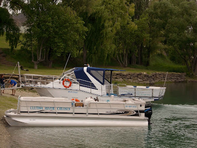 Our brisk stroll in the damp, chilly air didn't yield a whole lot of photos, but we did discover a few new nooks and crannies around Clyde that we hadn't seen the previous day. We returned to The Workshops, and ate a quick breakfast before setting off on our main adventure for the day - a boat tour of historic sites on the mighty Clutha River, with Clutha River Cruises. The boats were moored downstream at the medium sized town of Alexandra, about 10km away. Fortunately, our hosts Steve and Sam also run Clutha River Cruises, so getting a lift to town wasn't a problem.