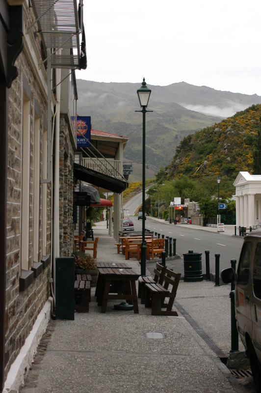 Today was a non-cycling day based in the Central Otago town of Clyde, but by no means a traditional "rest" day - we had big plans to try and find out what Clyde was all about. I set an alarm and woke up early, a rarity for a day when I didn't have to be on the road, to get some photos of Clyde in the morning sunlight. Stepping outside, we discovered that it had been raining very heavily overnight, and low cloud and fog was going to hamper our efforts to get any sort of decent photographs. Regardless, we spent an hour strolling around the historic streets before returning to our accommodation for breakfast.