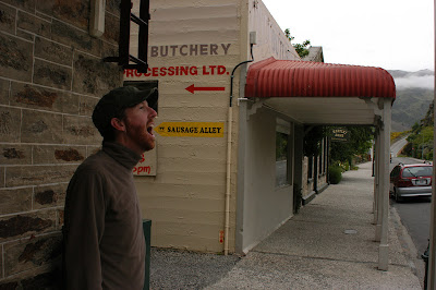 After returning to shore at Alexandra, we went with Steve and Sam back to The Workshops, where we all enjoyed a long lunch in the outdoor BBQ area. Jer and I were like a pair of eager school kids, and spend a couple of hours asking questions about Central Otago and New Zealand in general - we were privileged to have such knowledgeable and interesting people as our hosts. After lunch was finished we walked back to the main street of Clyde, for a coffee in what was originally the old bank building. As we sat there looking out on the street, I realised that I was seeing a lot of cyclists on touring bikes riding by throughout the afternoon. It wasn't a huge number of riders, but to see ten or so other cycle tourers on the same day is a bit of a rare thing, and more evidence that there must be something very special drawing cyclists to the trail - I was buzzing to think that tomorrow morning I'd be finding out just what that special something was. Soon the threatening clouds finally opened, so we scurried back to the The Workshops, stoked up the fire, and drank cups of tea while we prepared our gear for the following day.