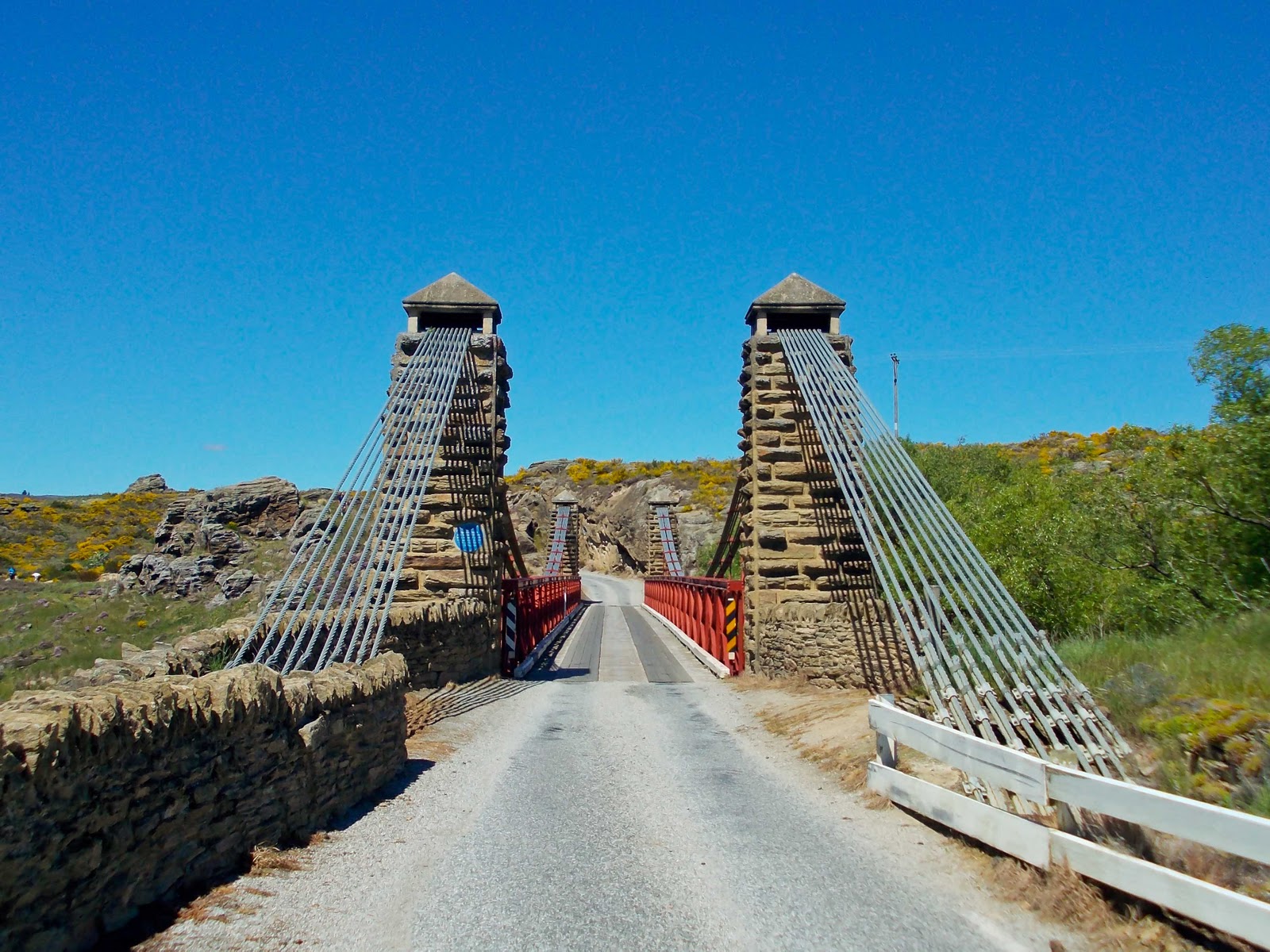 DeleteYour first bridge, just out of Clyde, is across Muttontown Gully... not the river crossing (Manuherikia) you show later. The suspension bridge cables are not adjusted with 'drums', but with a turnbuckle-type arrangement. The pit you show in your photo will be where the cable anchors are. They have to be readily visible for bridge inspections. I used to run trains on that railway and lived in Ranfurly. I hope you enjoyed your ride over my old 'railway'.