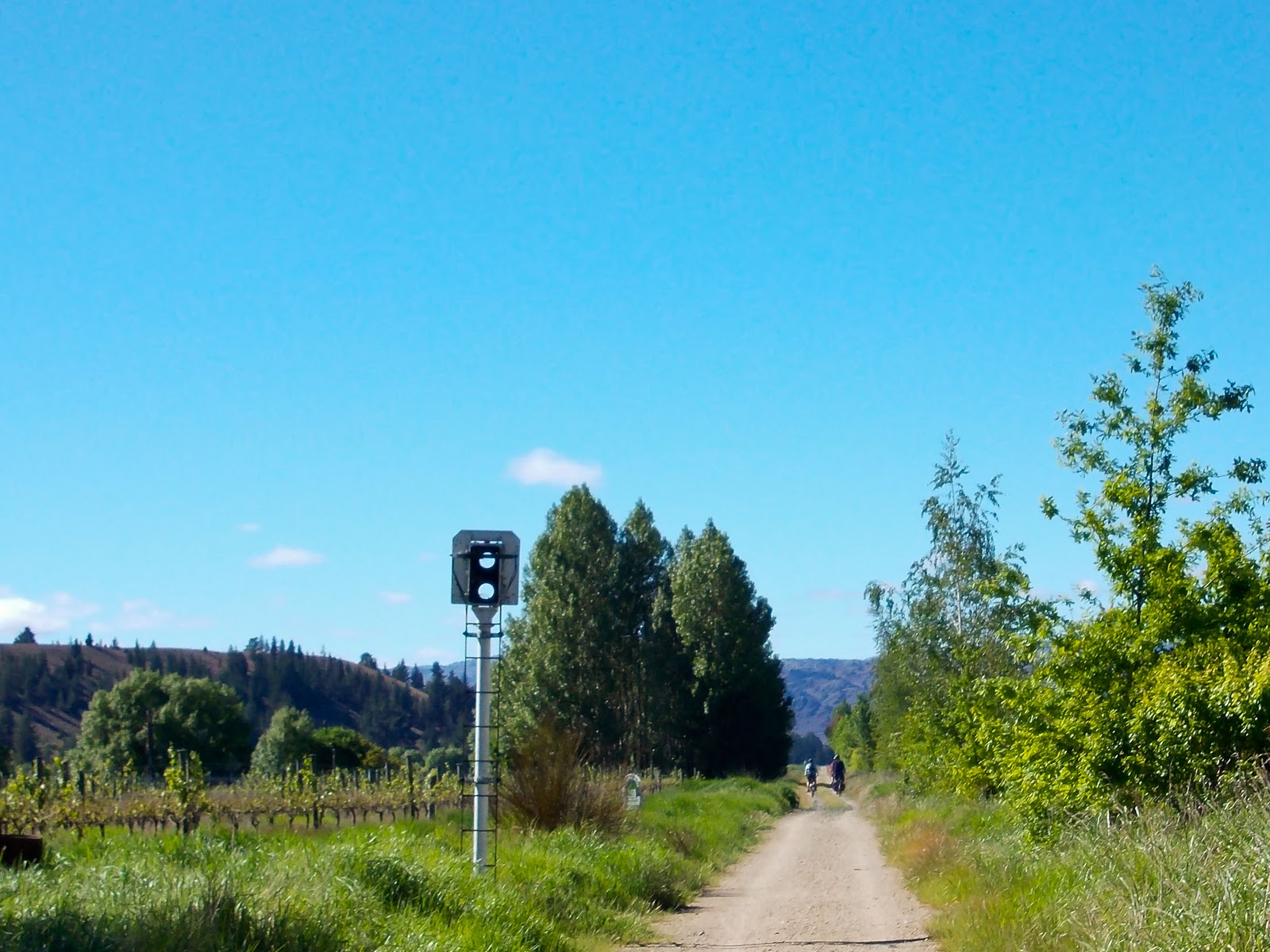 We slowly pedalled across the town of Clyde, towards the old railway station, which we figured was a logical place to start the trail. We found the old station building contained a display of restored machinery, which we looked at for a while before heading over to the sign marking the official start of the Rail Trail. Arriving felt like a momentous occasion, and it seemed we weren't the only one who thought so - a few other cyclists were standing around at the start, posing for photos with their bikes under the clear and bright Otago sky. After 12 months of planning and two weeks of riding across New Zealand to get here, the big moment had finally arrived. We pedalled out of Clyde on the Otago Central Rail Trail, towards the town of Alexandra and eventually Dunedin. As soon as I hit the hallowed gravel of the trail, my earlier foot pain evaporated, and I was happily on my way.