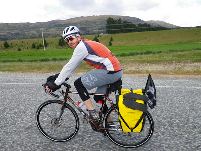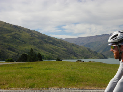 Our ride out of Wanaka didn't last long. Within a few kilometres Jer stopped, trying to repair his speedo, which suddenly wasn't working. He adjusted the sensor and rode another kilometre or so, then stopped again. I asked what the problem was, and he said "my speedo isn't working. I looked at it and somehow the sensor has shifted onto the opposite side of the wheel. I just don't get it". I looked at the bike, and with great delight I pointed out that he had installed the front wheel facing backwards. It's an inconvenient and embarrassing thing to happen to a seasoned cyclist, so I did what any sympathetic friend would do - I assured him that the story would most definitely end up in the blog, and then I rode away laughing.
