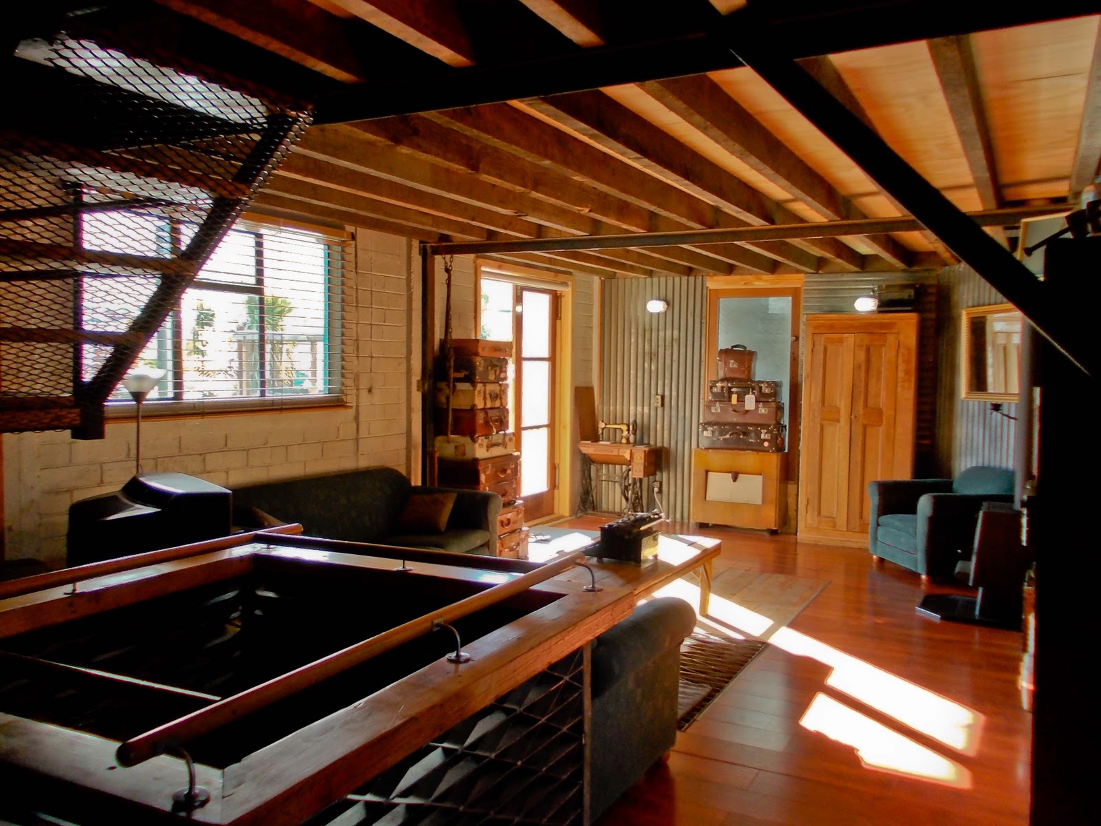 The lounge area, with one of the exposed inspection pit features in the foreground. Such an amazing space - perfect to retreat in peace from world, but with enough cues to remind you what part of the world you're in