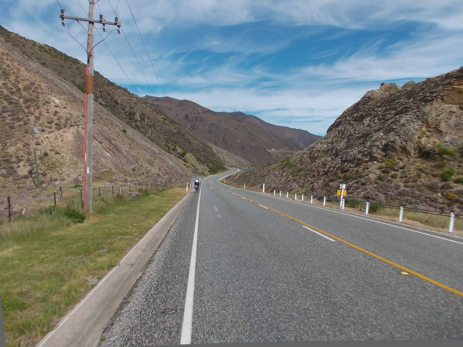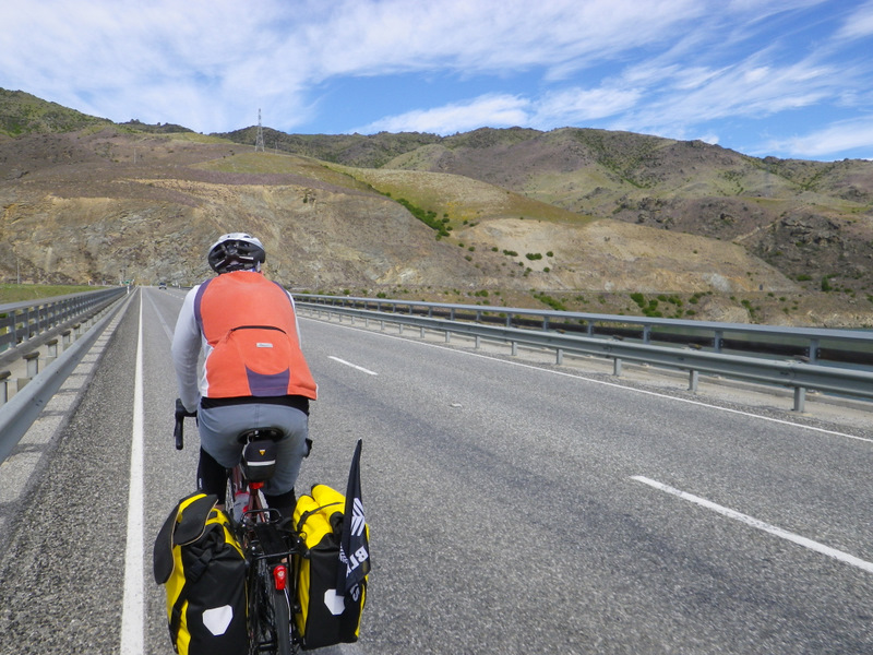 Jer climbs south from Wanaka, with all his wheels now correctly oriented. From here we left behind the snow covered Southern Alps